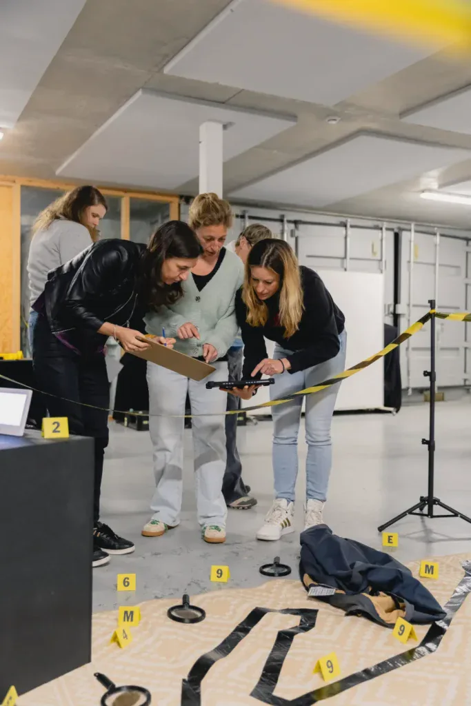 De deelnemers worden opgedeeld in teams van maximaal 6 personen. Dit zorgt ervoor dat iedereen actief betrokken blijft en zijn of haar sterktes kan inzetten tijdens het onderzoek. Wij kunnen de groepen willekeurig samenstellen tijdens de introductie van het spel of jij kan vooraf een groepsverdeling maken.