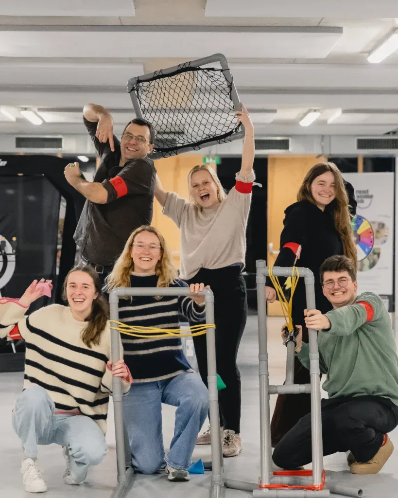Project Slingshot is een strategische teambuilding waarbij teams samen een katapult bouwen met buizen en koppelingen. Door slim te plannen, te testen en samen te werken proberen jullie zoveel mogelijk punten te scoren tijdens de finale opdrachten.