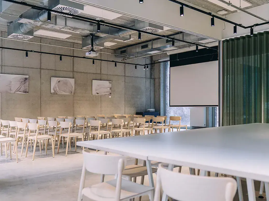 De Hoorn in Leuven is een binnenlocatie met een sterke beleving. De zaal Multifunk (101 m²) met betonnen vloer is multifunctioneel inzetbaar en biedt voldoende ruimte om comfortabel te bewegen, te overleggen en in teams te werken. Dat maakt het een fijne teambuilding locatie voor groepen tot 40 personen die graag een compacte, kwalitatieve setting hebben.