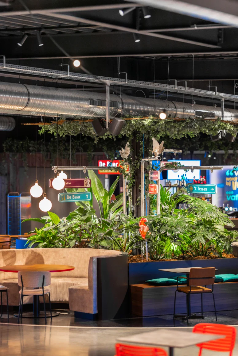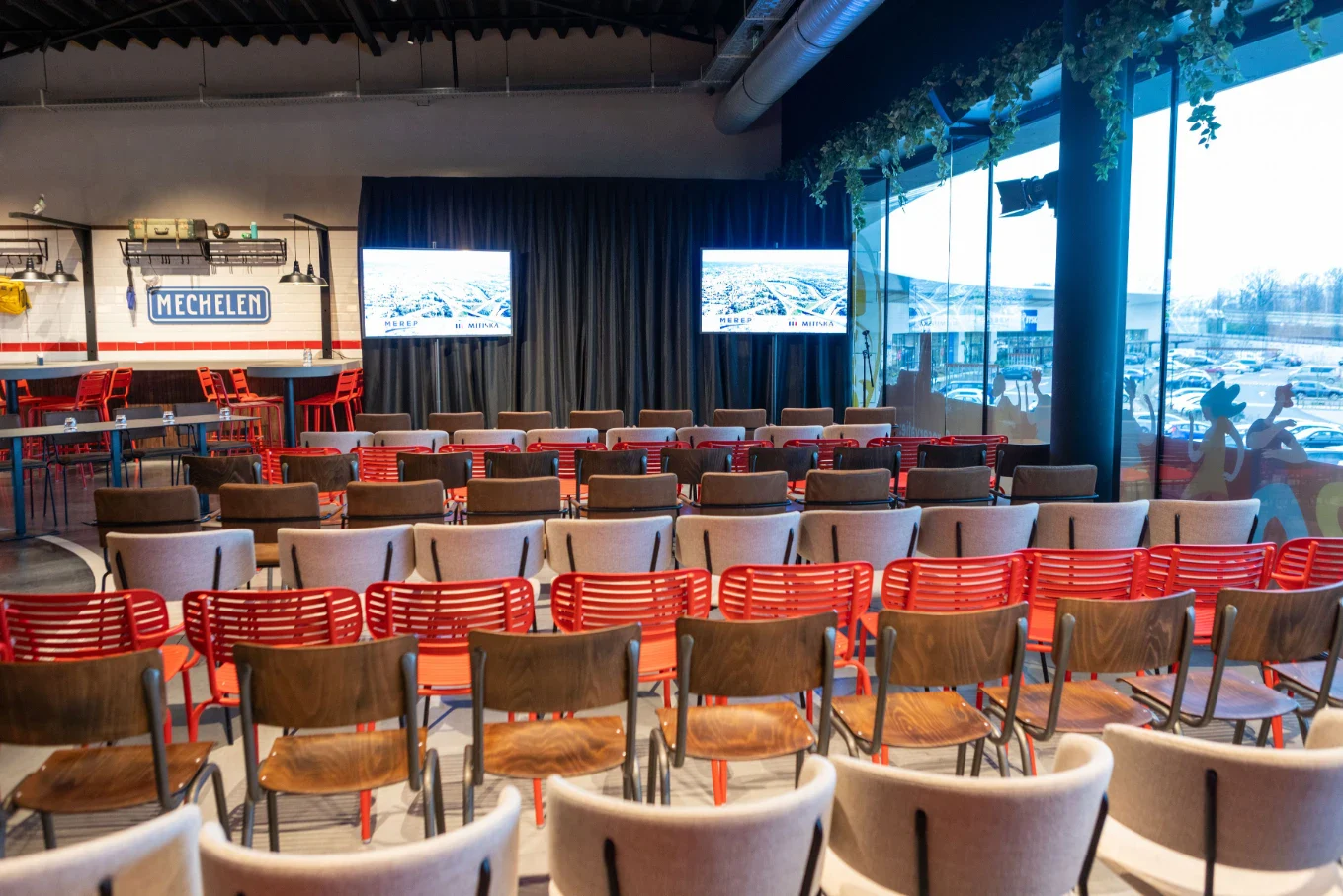 Daarnaast beschikt de locatie over een fijn terras, ideaal voor afterworks, informele pauzes of een gezellige afsluiter van de dag. De combinatie van binnen- en buitenmogelijkheden zorgt ervoor dat je programma vlot kan schakelen tussen actie, overleg en ontspanning.