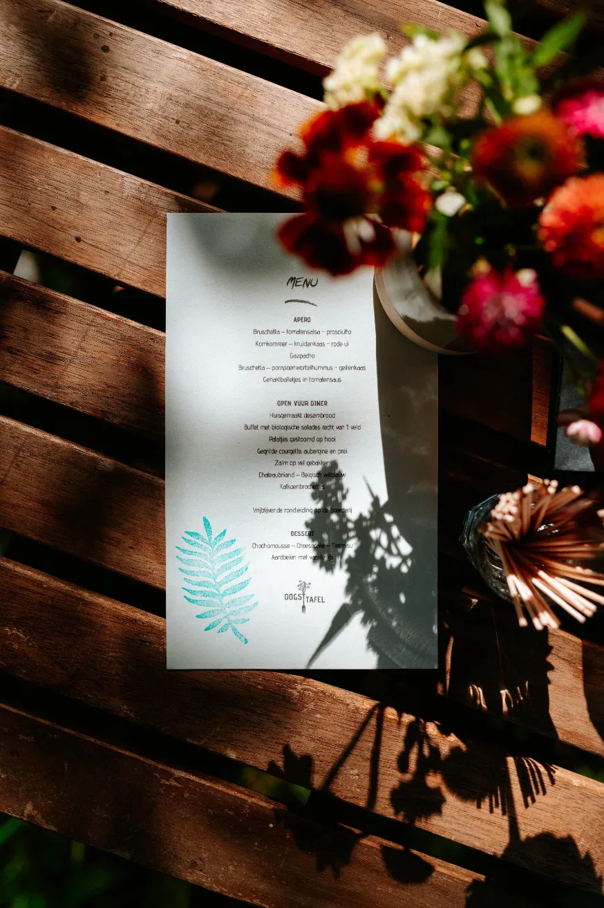 Oogsttafel staat bekend om zuurdesempizza’s en een openvuurdiner. Daarnaast zijn er opties om een dag te ondersteunen met ontbijt, lunch of diner (afhankelijk van formule en planning). Geef bij aanvraag door of je eerder een informeel foodconcept of een strakker timingmenu wenst.