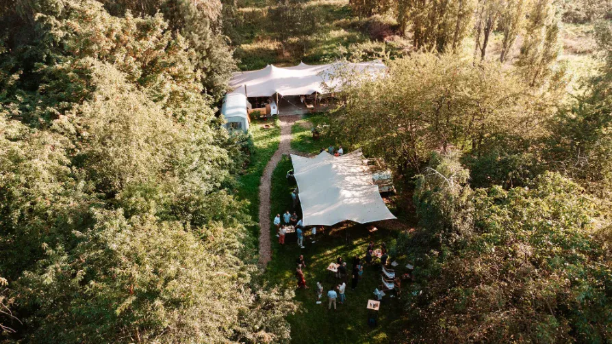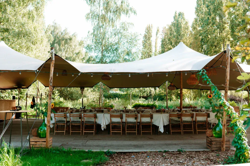 Die combinatie van tenten geeft flexibiliteit: je kan de teambuilding en het eetmoment logisch na elkaar plannen, of zones creëren (briefing, activiteit, pauze). De setting is bovendien perfect voor wie graag outdoor mogelijkheden wil, maar toch comfort en structuur nodig heeft voor het programma.
