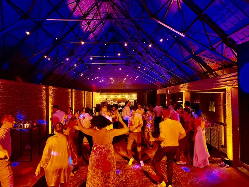 De feestzaal, verdeeld over twee delen (30x7m en 20x4m), zorgt voor een stijlvolle indooropstelling met voldoende bewegingsruimte. Dankzij de natuurlijke lichtinval en akoestiek is dit een aangename plek voor presentaties, workshops of gezellige afsluiters. De uitstraling is warm, uitnodigend en professioneel.