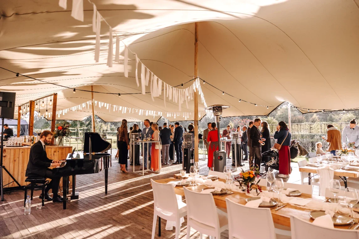 Met 8 hectare buitenruimte, een grote stretchtent en een veelzijdige feestzaal heeft de locatie meer dan genoeg plek voor kleine en grote groepen. Je kan workshops, break-out sessies of activiteiten in verschillende zones plaatsen zonder elkaar te storen. De flow van de locatie zit juist in de combinatie: buiten beleven, binnen ontspannen.